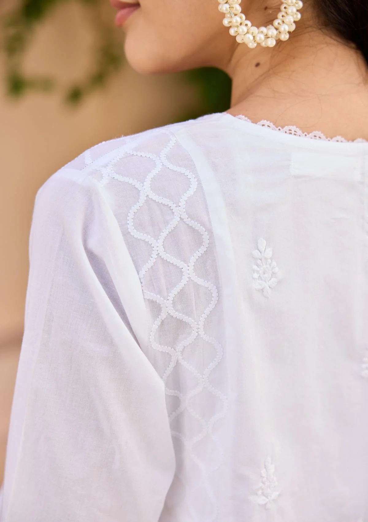 -65%HOC Cotton Chikankari Solid Women's Top - White—